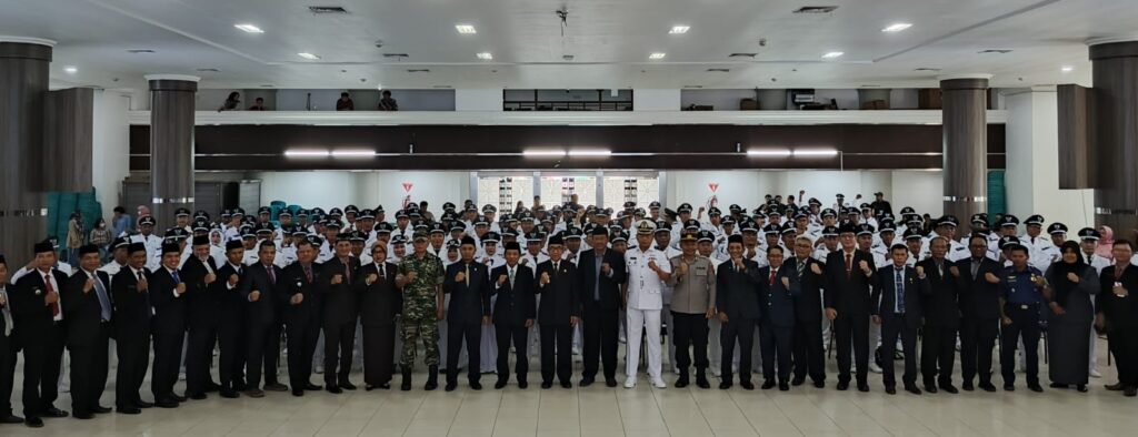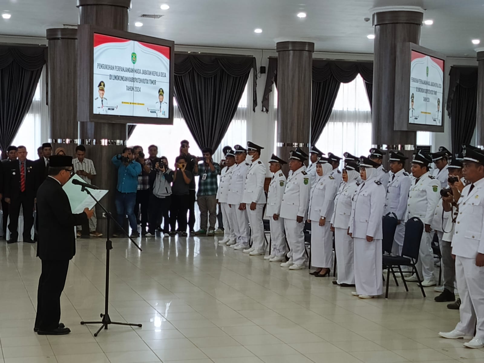 SUARAKUTIM.COM, SANGATTA – Sebanyak 135 Kepala Desa (Kades) di lingkungan Kabupaten Kutai Timur, Jum’at (28/06/2024) siang dikukuhkan perpanjangan masa jabatannya. Bertempat di ruang Akasia Gedung Serba Guna (GSG) Kompleks Perkantoran Pemerintah Kutai Timur, Bukit Pelangi, prosesi pengukuhan ratusan Kades ini dipimpin langsung Bupati Kutai Timur, Ardiansyah Sulaiman yang disaksikan unsur Forkopimda, sejumlah Kepala Dinas dan Badan di lingkungan Pemerintahan Kutai Timur, serta tamu undangan.