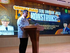 Bertempat di ruang Akasia Gedung Serba Guna Pemerintah Kutim, Kawasan Bukit Pelangi, Sangatta, kegiatan sosialisasi, pelatihan dan sekaligus sertifikasi Bidang Jasa Konstruksi ini dihadiri perwakilan unsur Forkopimda Kutim, perwakilan OPD (Organisasi Perangkat Daerah) Kutim, serta diikuti ratusan peserta yang tergabung dalam asosiasi perusahaan dan asosiasi profesi sektor konstruksi di Kutai Timur.
