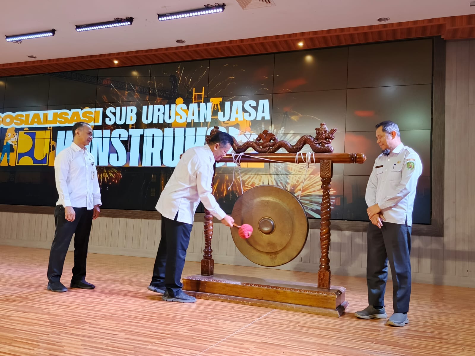 SUARAKUTIM.COM, SANGATTA – Disaksikan Plt. Kepala Dinas Pekerjaan Umum dan Penataan Ruang (PUPR) Kutai Timur, Joni Abdi Setia dan Plt. Kepala Bidang Bina Jasa Konstruksi DPUPR Kaltim, Alpian, tabuhan gong sebanyak tiga kali oleh Asisten Ekonomi dan Pembangunan (Ekbang) Sekretariat Daerah Kutai Timur, Noviari Noor menjadi penanda dibukanya secara resmi kegiatan Sosialisasi, Pelatihan dan Sertifikasi Bidang Jasa Konstruksi yang dilaksanakan Dinas PUPR Kutai Timur, Rabu (12/11/2025).
