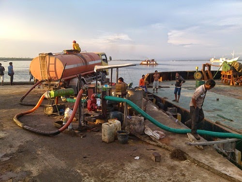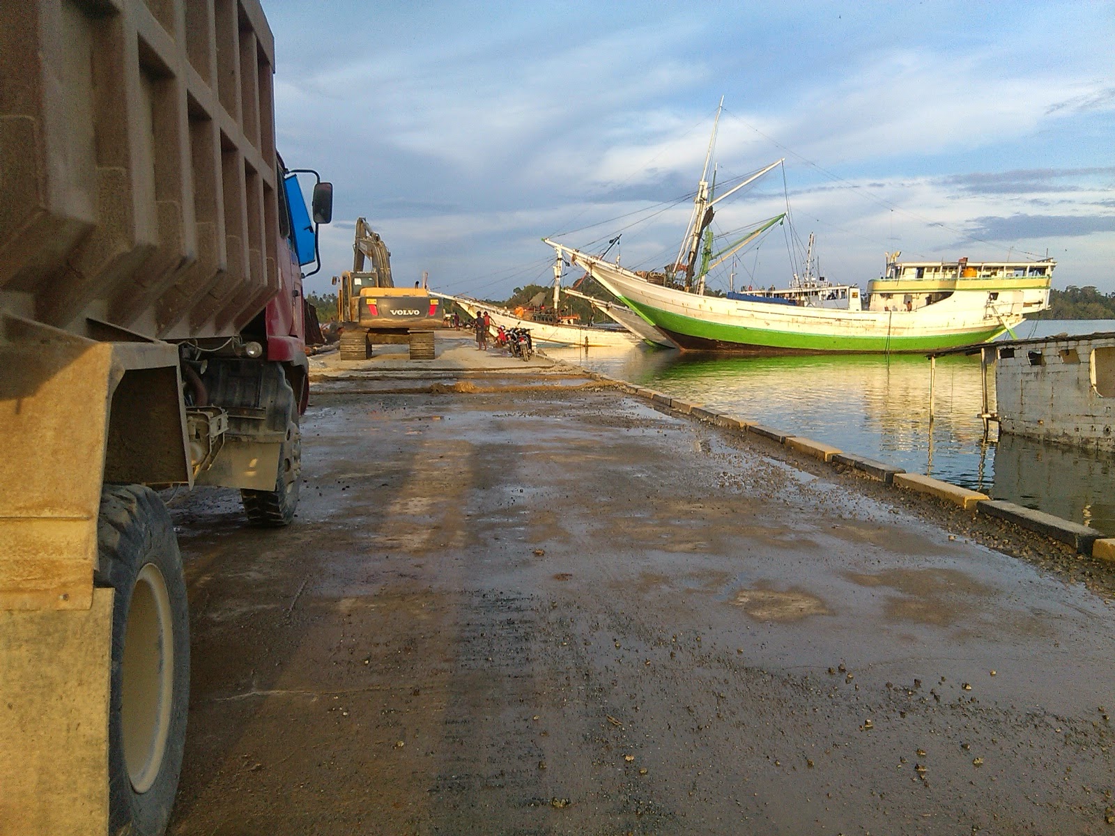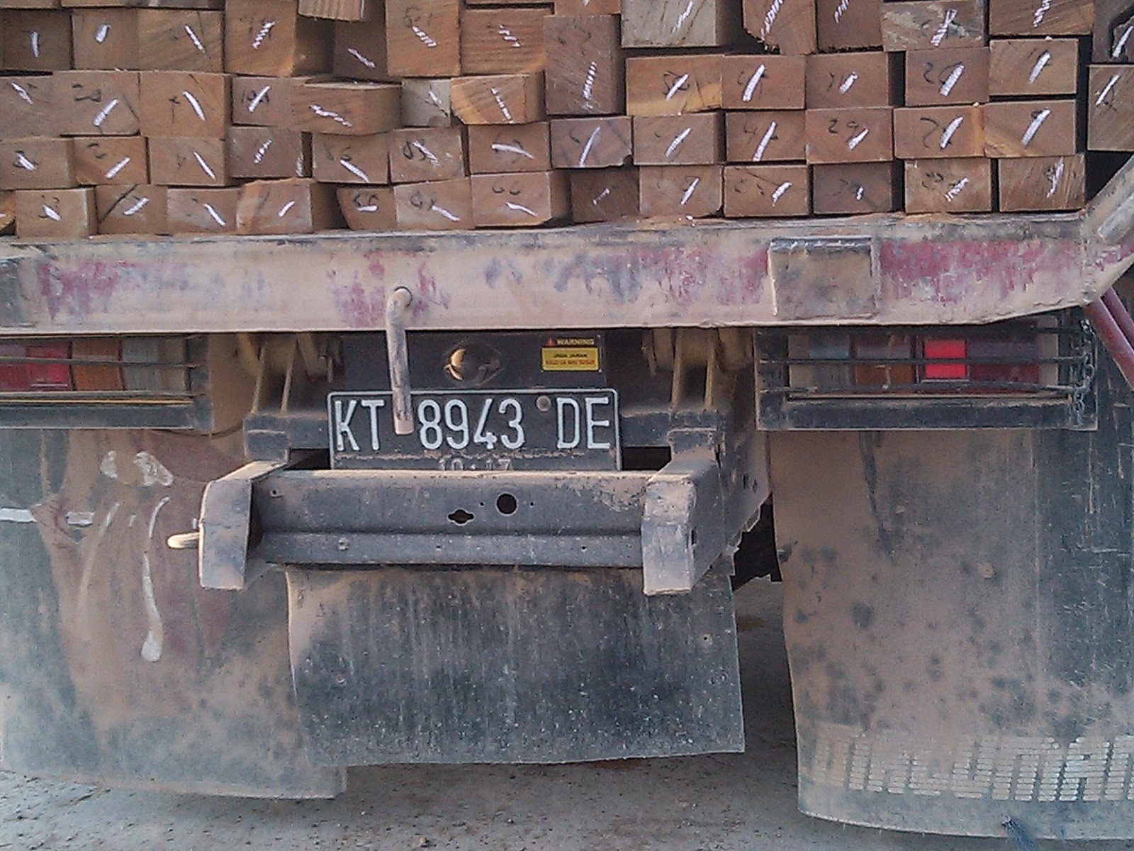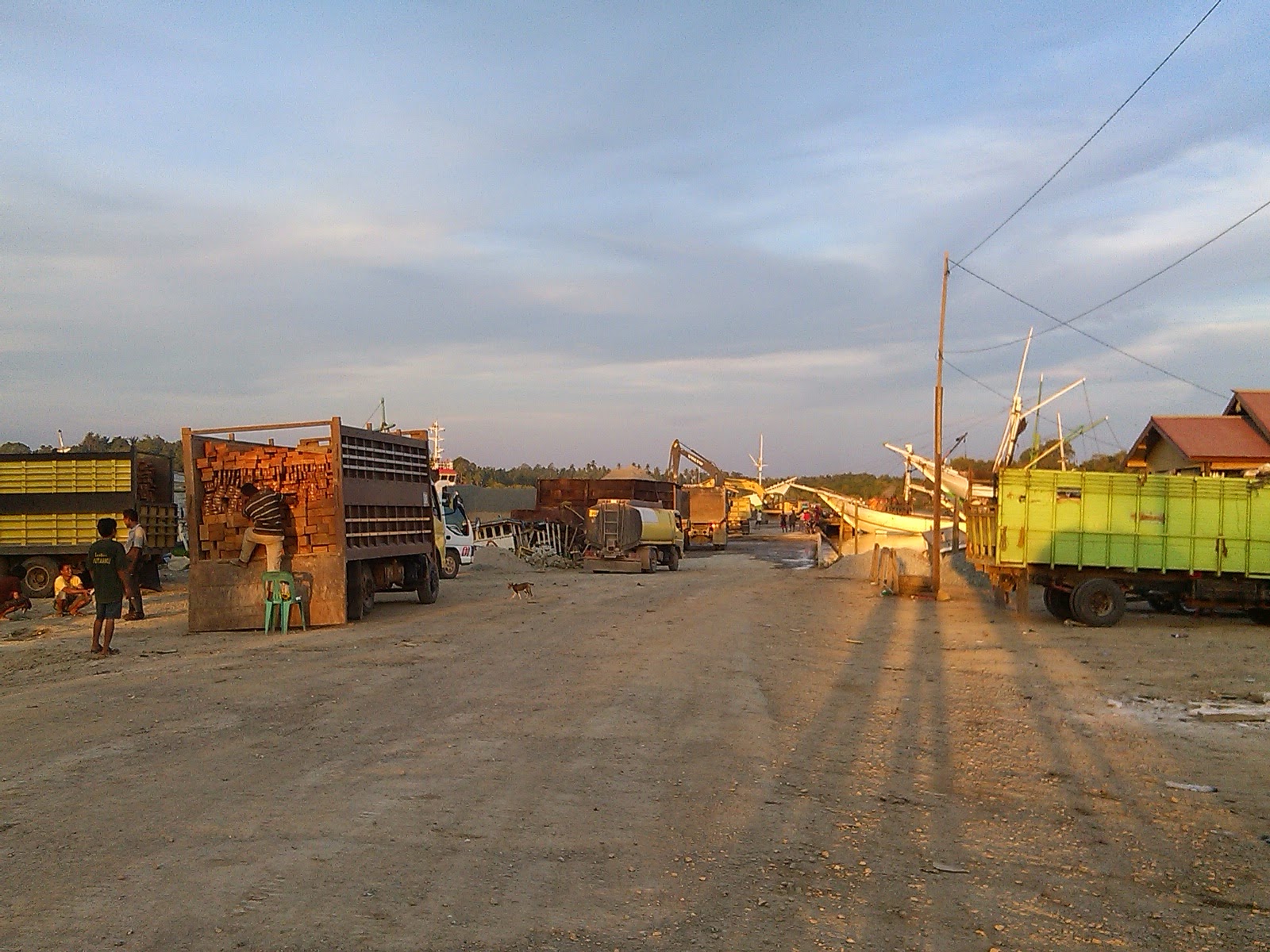 | Pengemudi truk kayu olahan menanti giliran bongkar muatan |
