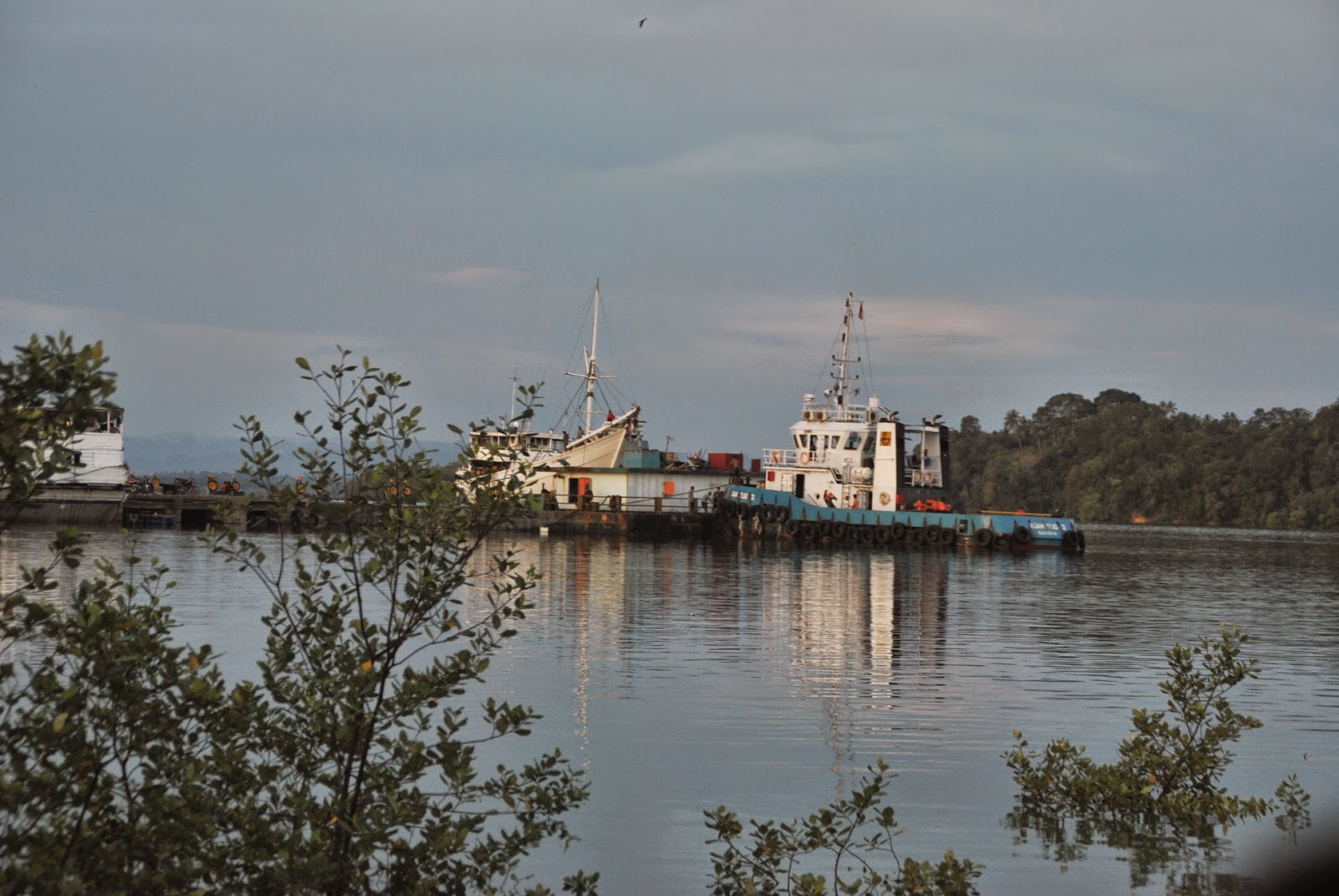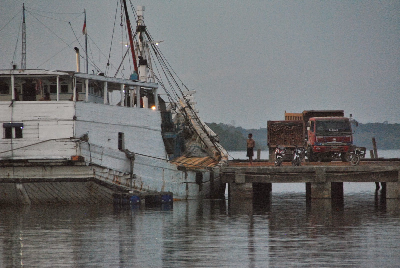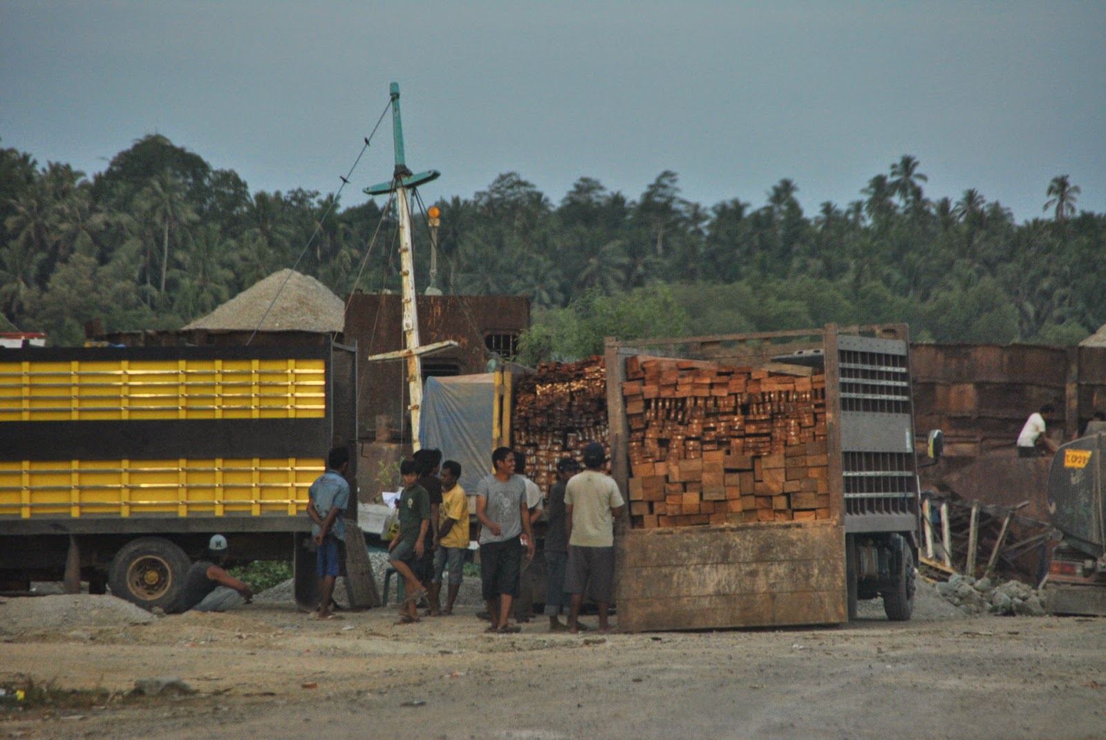 | Pengemudi truk kayu olahan menanti giliran bongkar muatan |