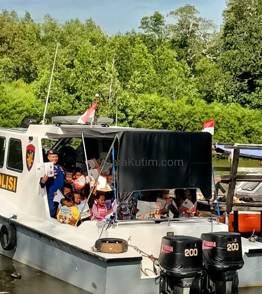 Tidak terkecuali Polri, merasa terpanggil dengan tanggung jawab tersebut, jajaran Polres Kutai Timur melalui Satuan Polisi Air dan Udara (Polairud), membuka layanan perpustakaan terapung. Di atas kapal patroli Satuan Polairud Polres Kutim, perpustakaan terapung ini dikhususkan bagi anak-anak yang berada di daerah pesisir wilayah Kutim.