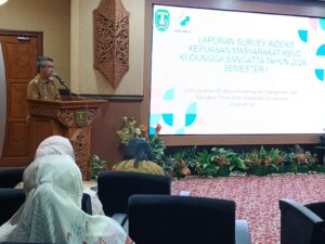 Dirut RSUD Kudungga Sangatta, Muhammad Yusuf saat memberikan laporan terkait ekspos hasil survey Indeks Kepuasan Masyarakat (IKM) RSUD Kudungga Semester I Tahun 2024