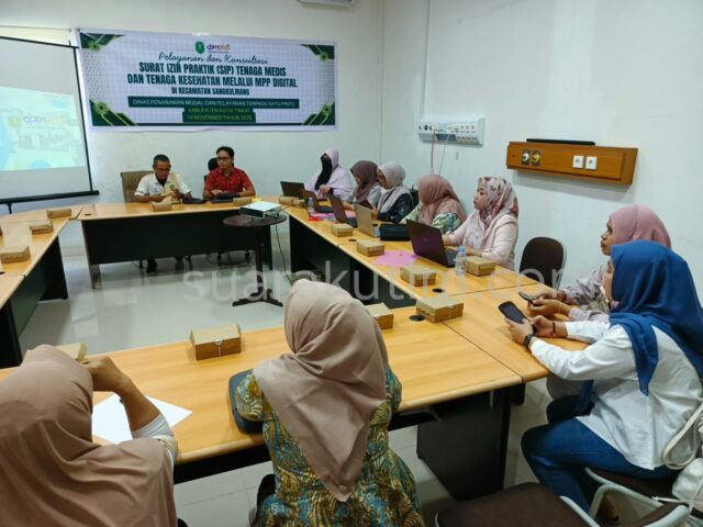 SUARAKUTIM.COM, SANGKULIRANG – Dinas Penanaman Modal dan Pelayanan Terpadu Satu Pintu (DPMPTSP) Kabupaten Kutai Timur (Kutim) melakukan jemput bola dengan membuka pelayanan dan konsultasi terkait pembuatan Surat Izin Praktik (SIP) bagi Tenaga Medis (Named) dan Tenaga Kesehatan (Nakes) melalui Mal Pelayanan Publik (MPP) Digital di Kecamatan Sangkulirang, Jum’at (14/11/2025).