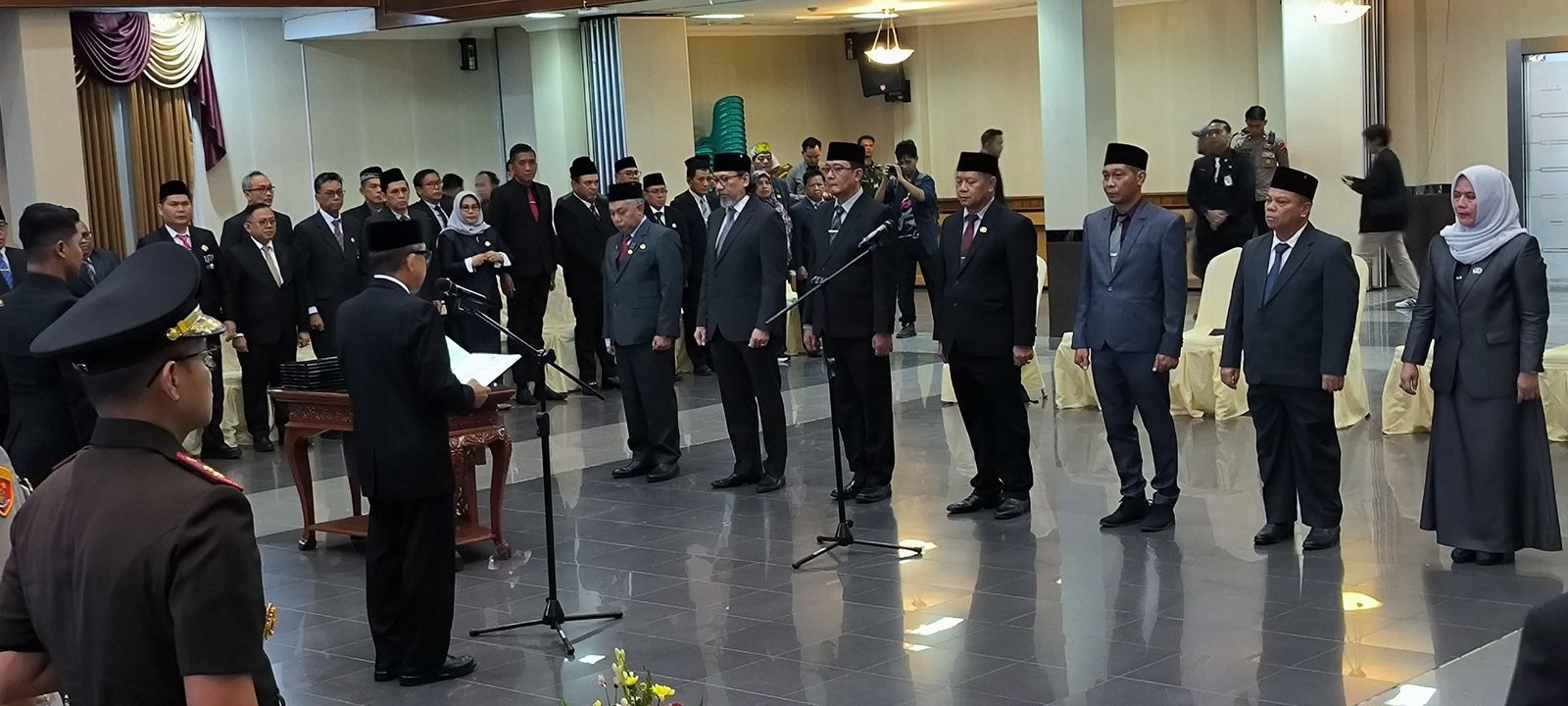 Prosesi pelantikan berlangsung khidmat dengan pengambilan sumpah jabatan yang dipandu rohaniawan, penandatanganan berita acara, serta peneguhan pakta integritas.