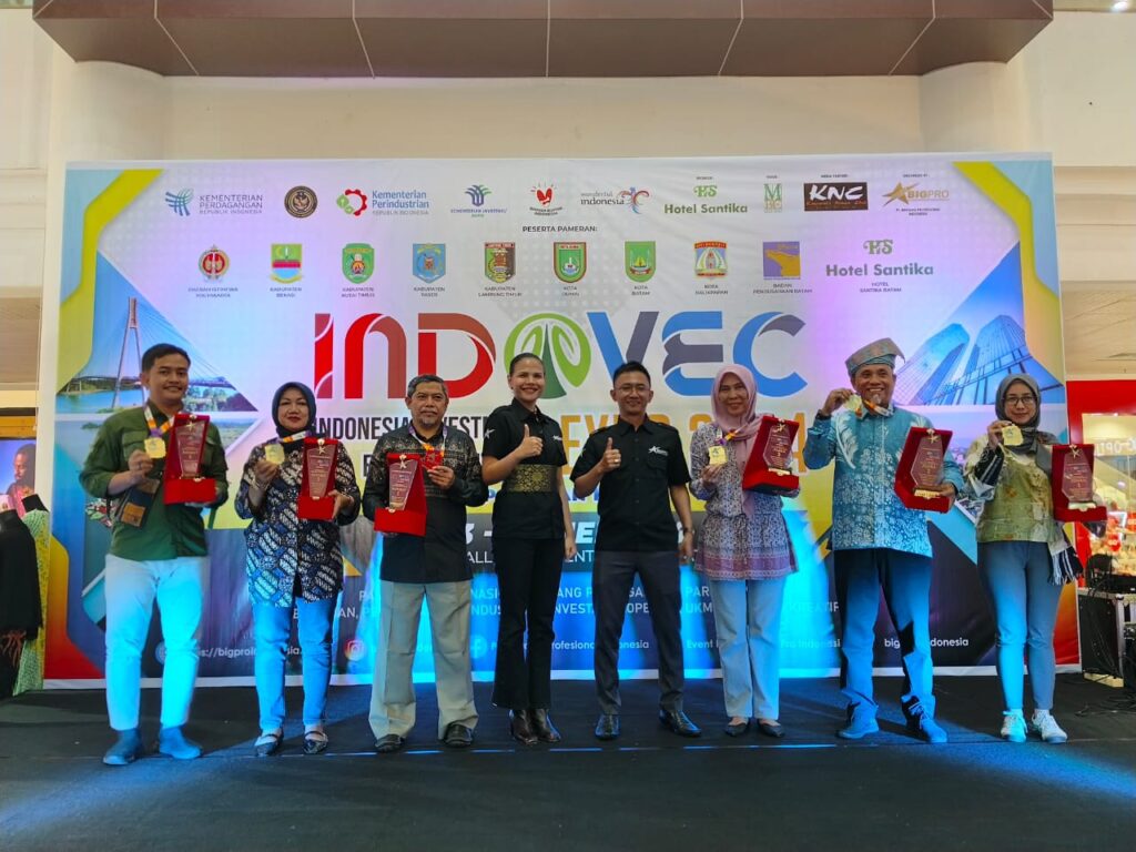 SUARAKUTIM.COM, SANGATTA – Tak sia-sia keikutsertaan kontingen Pemerintah Kabupaten (Pemkab) Kutai Timur (Kutim) dalam Indonesia Investment & Export Commodity (INDOVEC) EXPO 2024 yang digelar selama 4 (empat) hari, sejak tanggal 23-26 Mei 2024, di Kota Batam. Dalam expo yang diikuti sebanyak 24 Kabupaten/Kota, UMKM dan pelaku bisnis di Indonesia tersebut, Pemerintah Kutai Timur yang diwakili Dinas Penanaman Modal dan Pelayanan Terpadu Satu Pintu (DPMPTSP) Kutim ini berhasil menyabet juara pertama stand pameran terfavorit.