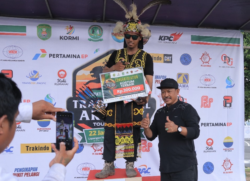 Moment saat Wakil Ketua II DPRD Kutai Timur, Arfan saat menyerahkan hadiah kepada pemenang dalam lomba panahan tradisional Bupati Kutim Cup, belum lama ini