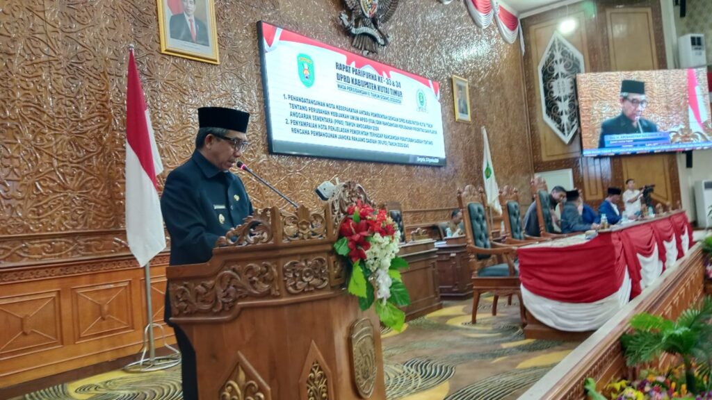 Di hadapan Ketua DPRD Kutai Timur Joni yang memimpin jalannya rapat paripurna dan disaksikan 33 anggota dewan, secara gamblang Bupati Kutai Timur Ardiansyah Sulaiman menyampaikan upaya persiapan pembangunan jangka panjang Pemerintah Kabupaten Kutai Timur, yang visioner dan berkelanjutan.
