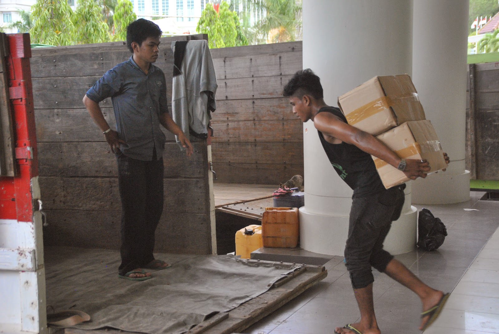 | Sejumlah logistik Pilpres sedang dimasukan ke mobil |