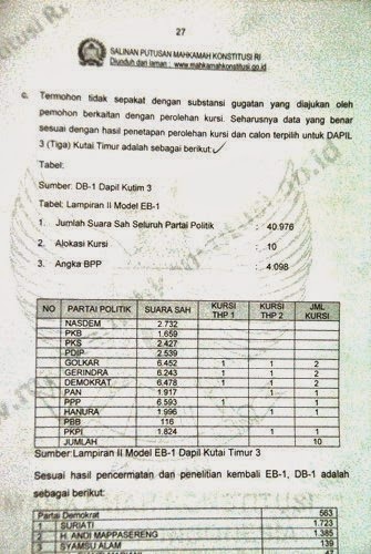 | Data pada putusan MK Terhadap Dapil 3 Kutim |