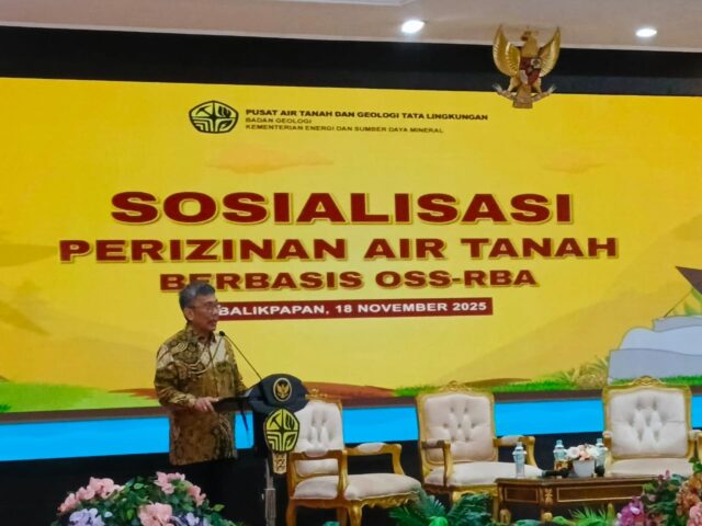 SUARAKUTIM.COM, BALIKPAPAN – Dalam rangka diseminasi informasi terkait Perizinan Air Tanah berbasis Online Single Submission Berbasis Risiko (OSS-RBA), Pusat Air Tanah dan Geologi Tata Lingkungan, Badan Geologi Kementerian ESDM menggelar kegiatan sosialisasi Perizinan Pengusahaan Air Tanah berbasis OSS-RBA, Selasa (18/11/2025), bertempat di Ruang Auditorium Balai Kota Balikpapan, Jl. Jenderal Sudirman, Kota Balikpapan. Pada kegiatan ini, Dinas Penanaman Modal dan Pelayanan Satu Pintu (DPMPTSP) Kabupaten Kutai Timur (Kutim) mengutus tim perizinan guna mengikuti sosialisasi perizinan pengusahaan air tanag berbasis OSS-RBA.